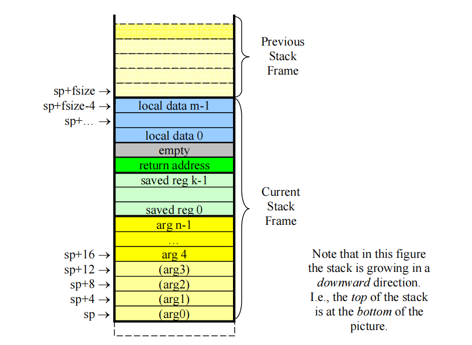 如上图所示,参数其实放在了 $a0-$a3 ,其余的参数需要压栈,这也就是 syscall.S 中要填写的内容,刚开始没有提示需要看这方面的内容,因此我在理解代码上遇到了一些阻碍。尤其需要注意的是 arg0-arg4 实际上是存在寄存器中的,但是我们仍然在内存中给它们留下了空位,这在编写汇编代码访问参数时尤其需要注意